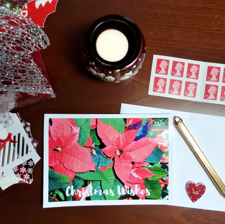 This image is a digitally enhanced version of one of my original photographs. The card will be printed by me on good quality 240gsm cardstock with a gloss finish. It is 7 x 5 ins and is supplied with a plain white envelope. The front of the card has the words 'Christmas Wishes'. On the back is a smaller picture of the original photo along with brief details. It is blank inside for your own greeting.
