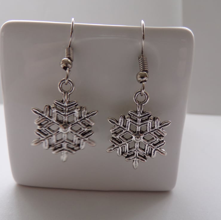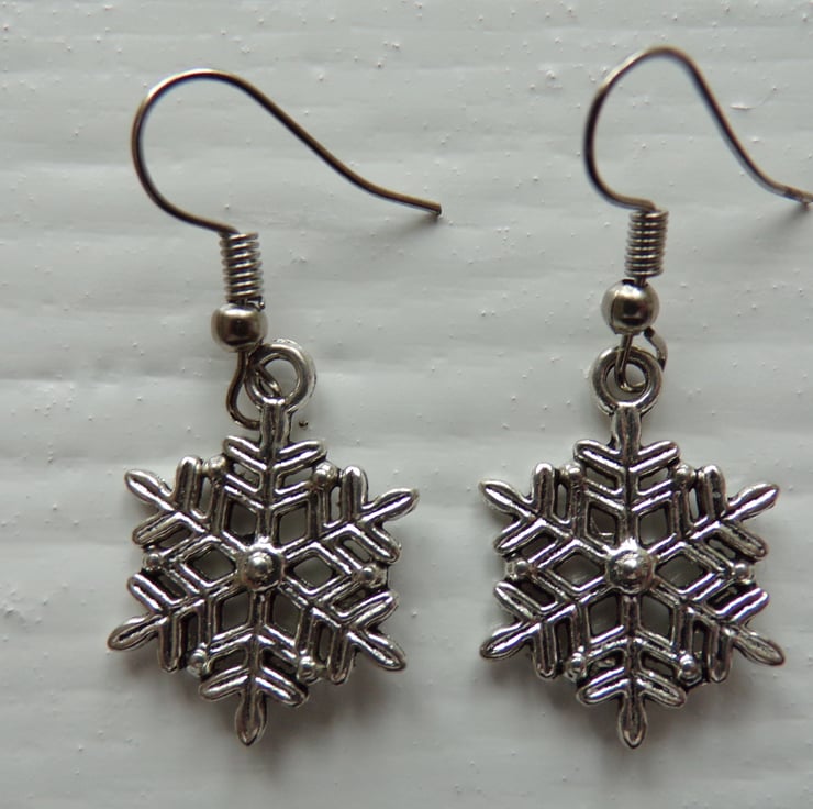 Get in the Xmas mood with a pair of Christmas snowflake earrings, the charm hangs approximately 2cm down from the ear wire, the ear-wire is nickle free silver plated.