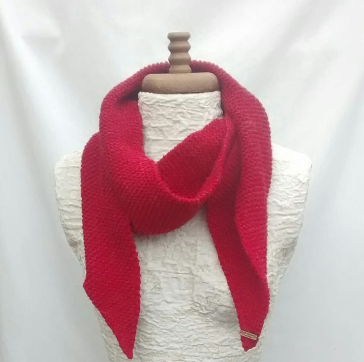 This scarf is knit in garter stitch with pointed ends to create a stylish scarf. All my hand knitted scarves are my own gorgeous designs hand knit by me using quality yarns. Handmade with care and attention to detail and finished to a high standard.