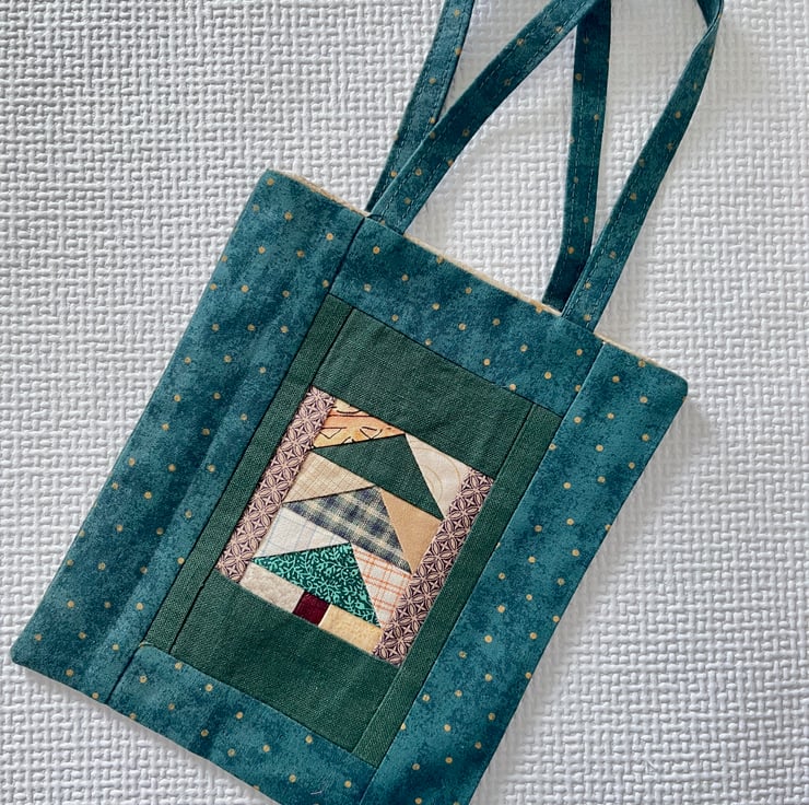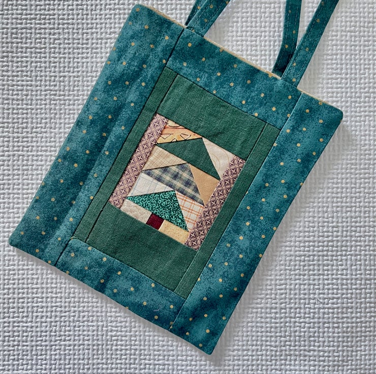 Pretty little patchwork gift bag which could be used as a Christmas gift bag for a special present or given as a present itself.