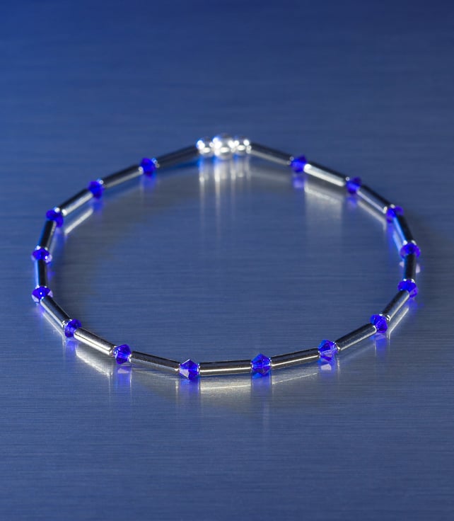 Bracelet made from polished Hematite tubes, 3mm Swarovski bicones and 2mm/3mm Sterling Silver beads.