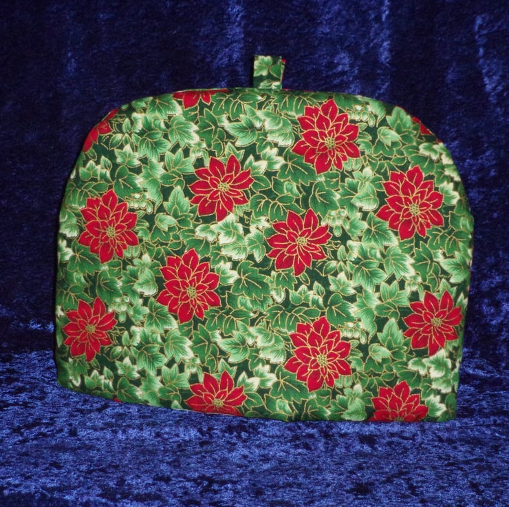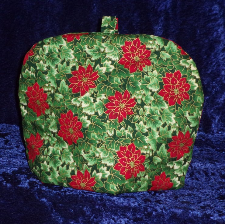 Large Christmas Tea Cosy with Ivy and Poinsetta Flowers