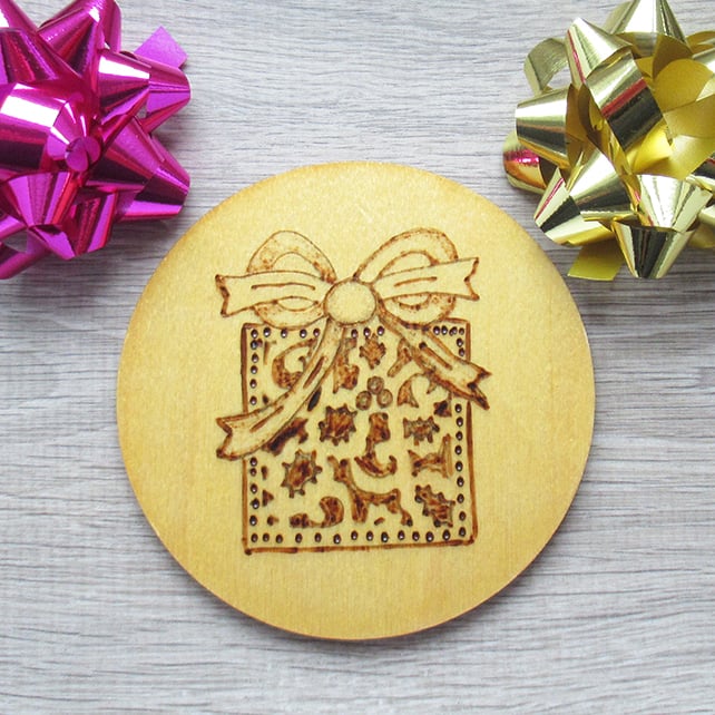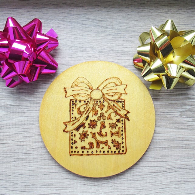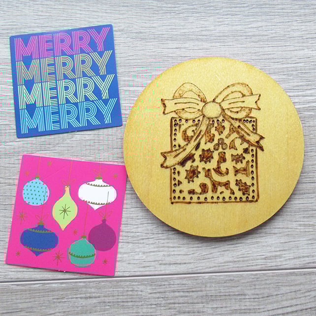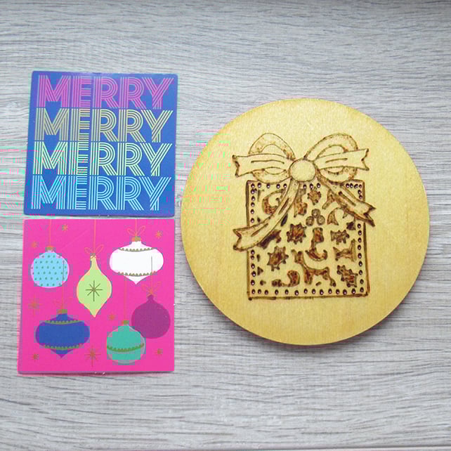 A Christmas coaster, with Christmas gift design, a great little present idea this Christmas.
