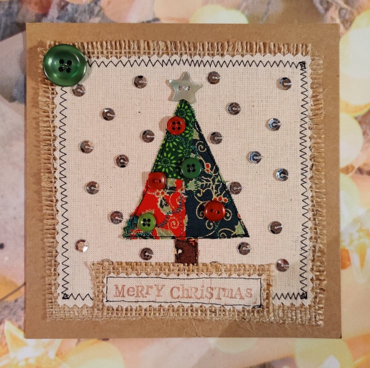 Made from scraps of fabric, embroidered together, the cards are then hand embellished with buttons and sequins to sparkle all through the festive season!