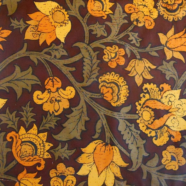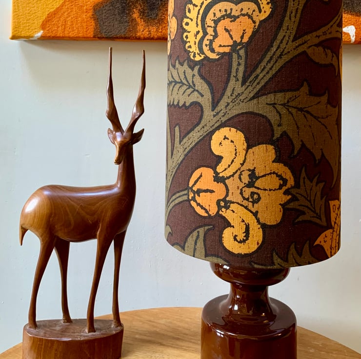 Ornate Pandora Brown and Orange 70s Bernard Wardle VIntage fabric Lampshade