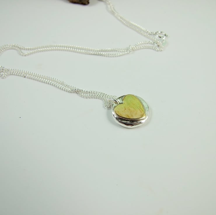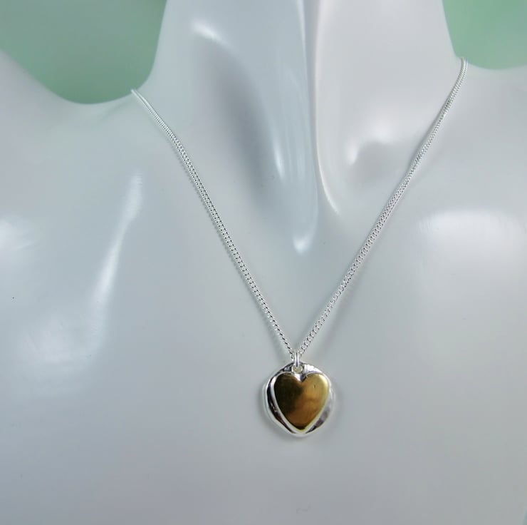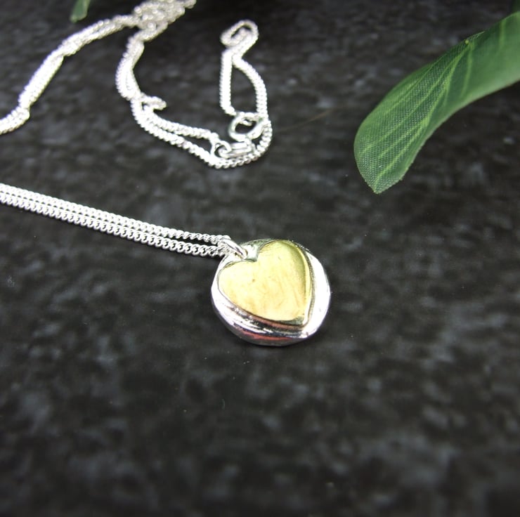 Recycled Silver Nugget Pendant. Handcrafted from Recycled Silver with Brass Heart soldered on to the nugget.