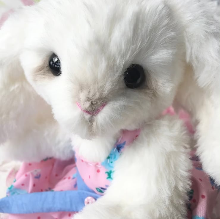 Ysabel is a beautiful little white bunny rabbit that is created from a super soft faux fur plush.