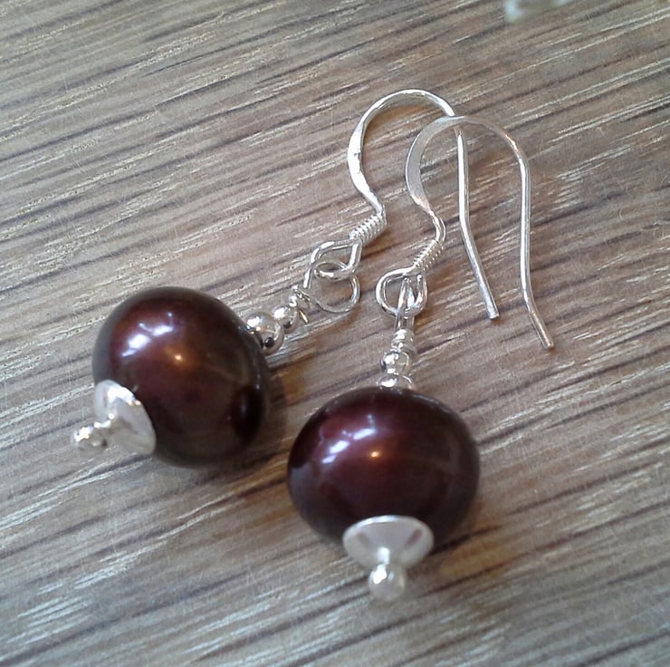 A lovely pair of 12mm bronze baroque pearl earrings designed and hand crafted for everyday wear. Large freshwater pearls are expensive to purchase within the trade as they are formed in the farmed mollusc for up to 6-7 years.