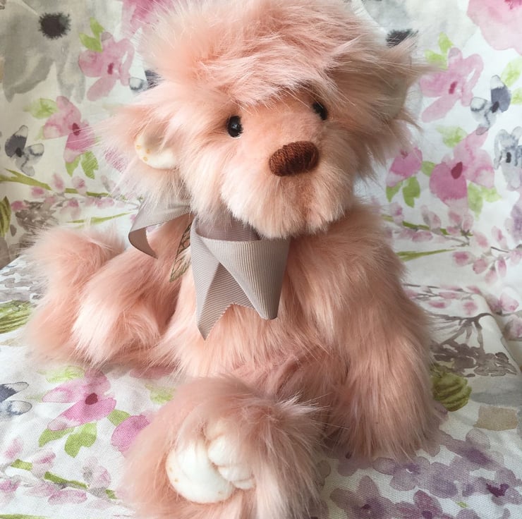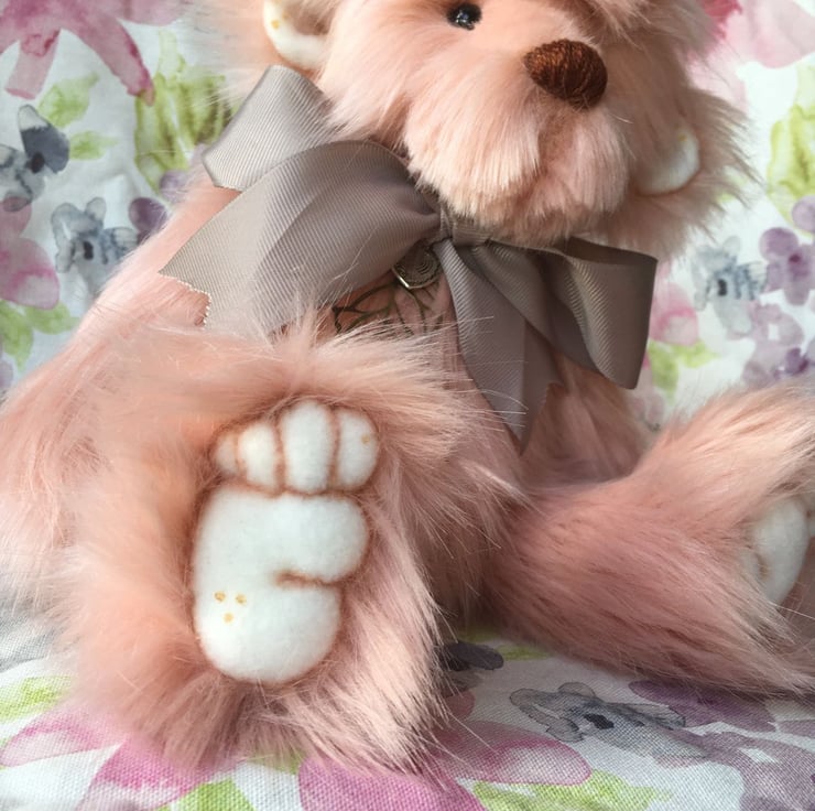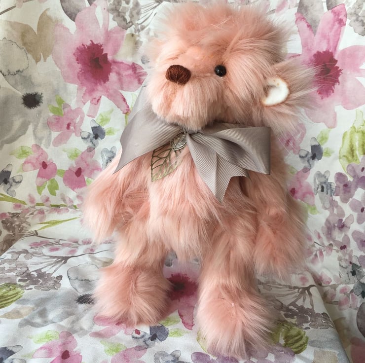 Rosie is a really fluffy bear that is created from the softest, pink plush faux fur.