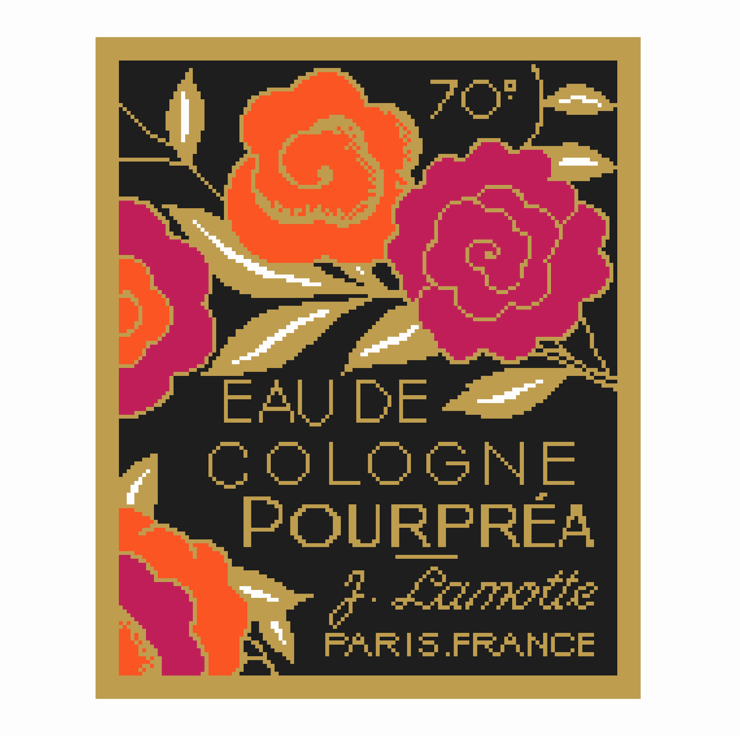 182A - Vintage 1920s Art Deco Lamotte Pourpréa French perfume bottle adaptation - modern version of a vintage cross stitch/tapestry PDF chart by Vivsters. No delivery costs - PDF counted chart file straight to your inbox. Start stitching straight today!