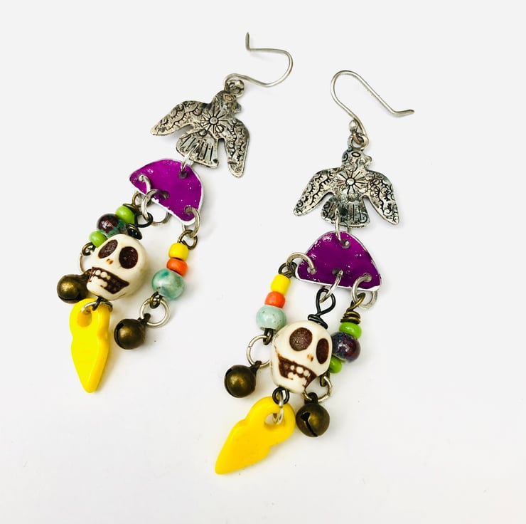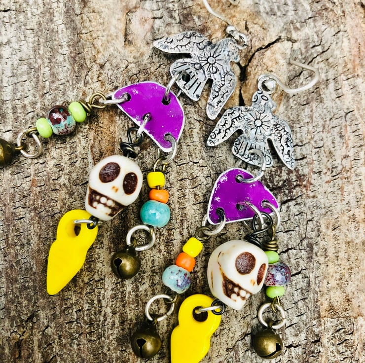 Handcrafted with a Mexican sugar skull day of the dead feel , made from a range of beautiful beads and the skull beads. Very on trend with frida kahlo very much in fashion.