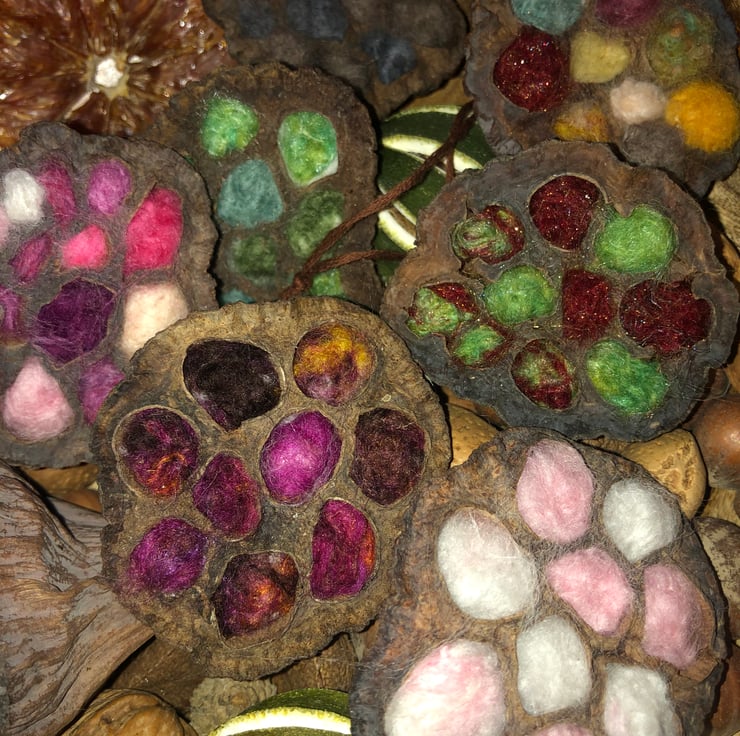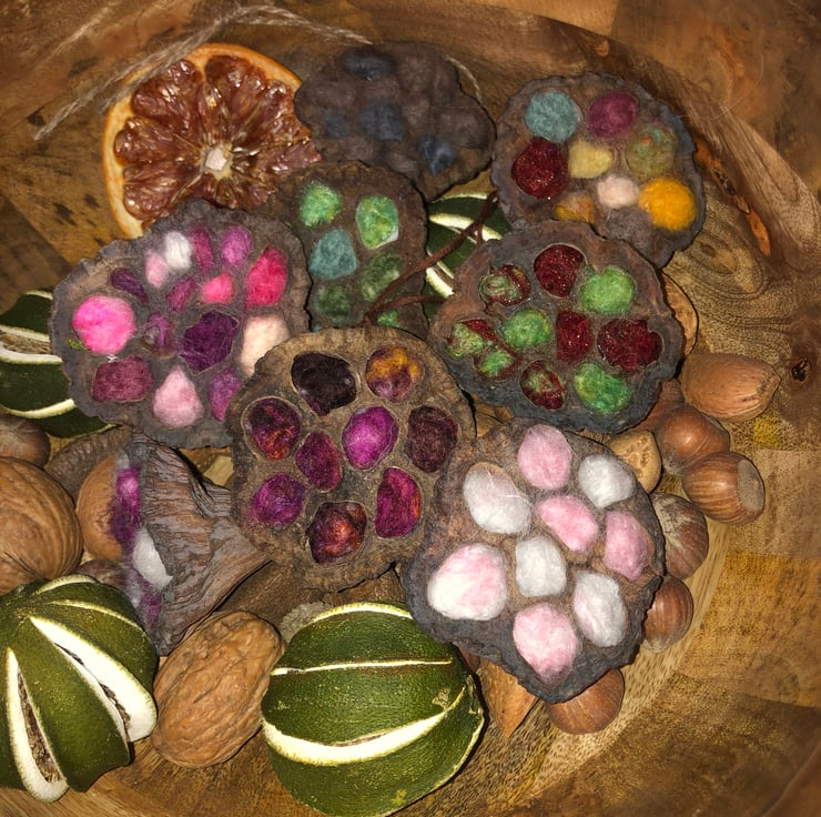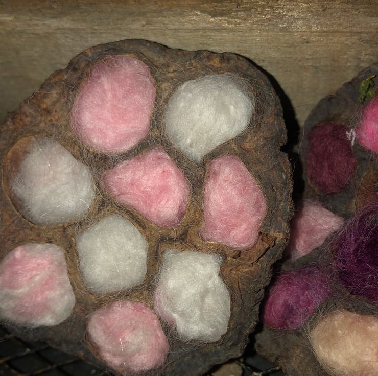 Lotus flower hand Felting within the pods with Several different colours or all one colour.