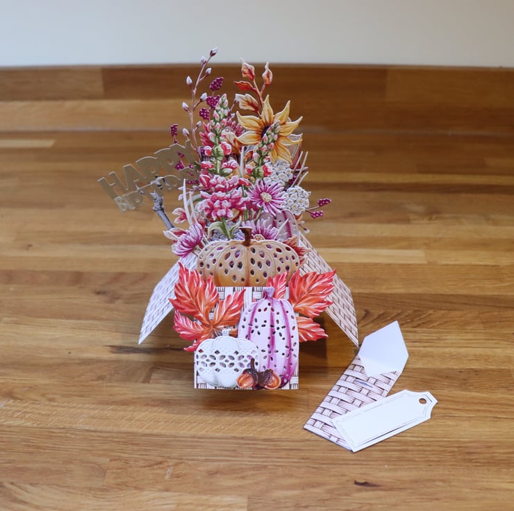 This Birthday Flower box card is 19 x 20 cm approx, in size and comes with a gift card.