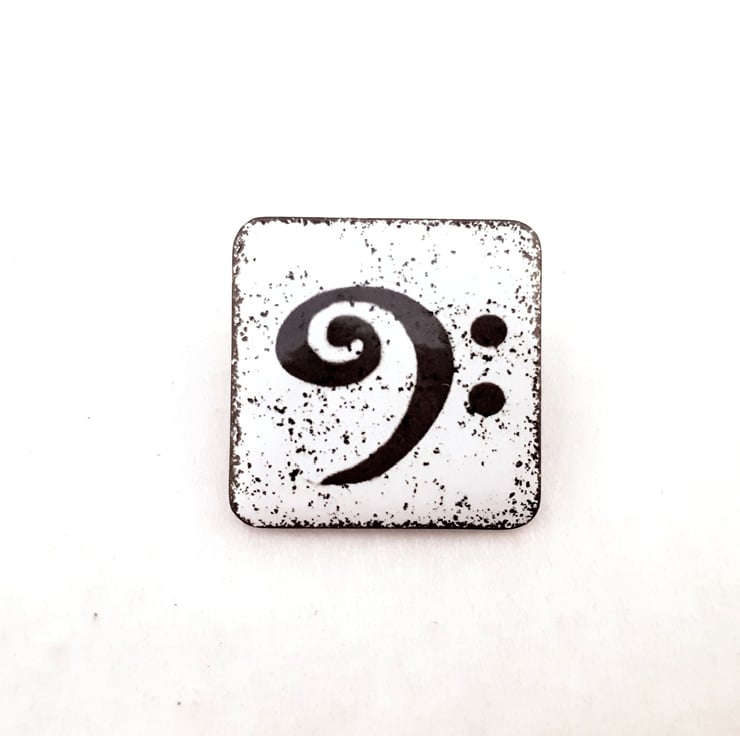 Looking for a gift for a music lover, this small square 22mm black and white kiln-fired enamelled copper brooch is a unisex gift bound to suit friends and family alike.