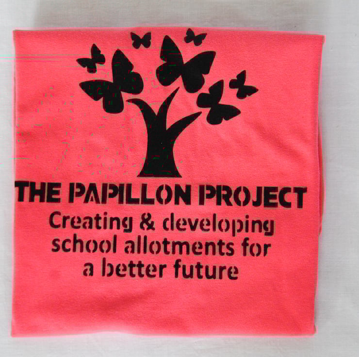 These Papillon Project logo tees are up-cycled from second hand t-shirts and screen printed by our wonderful team of volunteers.