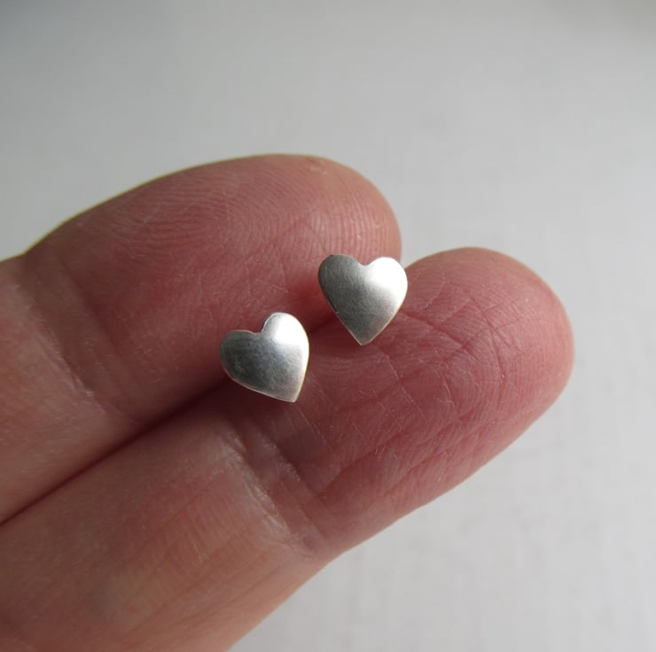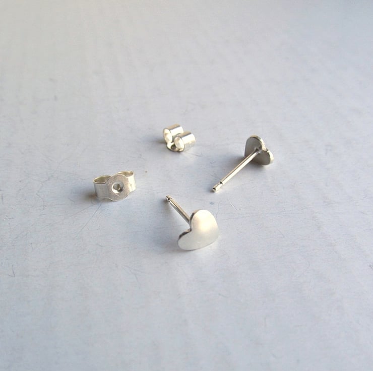 Handmade from Sterling silver brushed to a silky matt finish, the hearts measure approx. 5x5mm and come with Sterling silver butterfly backs.