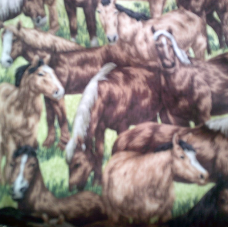 The design on this apron is Horses on a green background