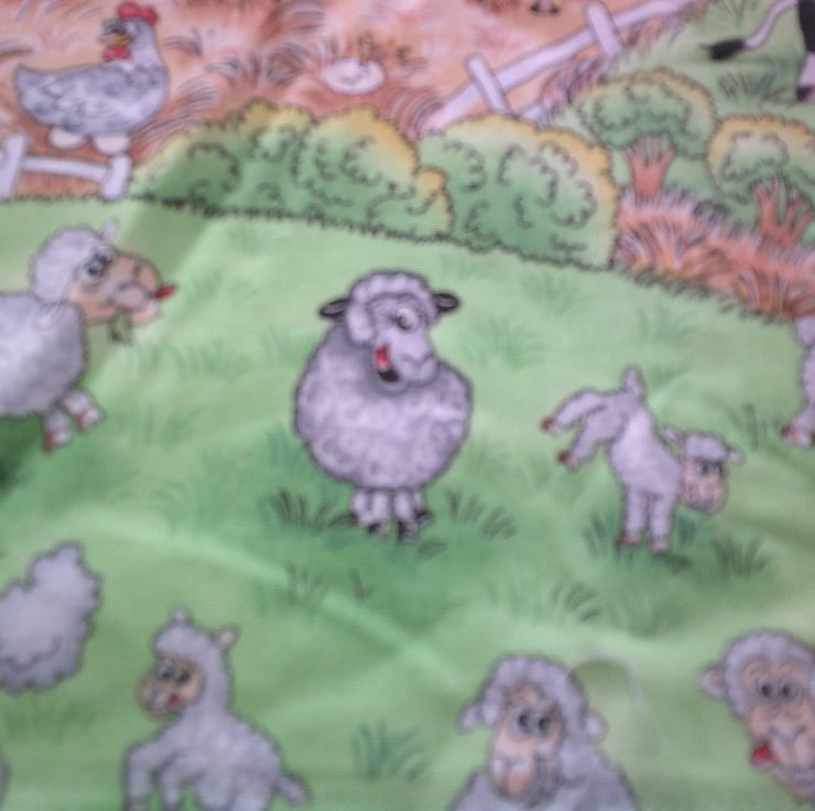 The reason we bought this fabric was because it reminded us of our life many years ago when my father was a farmer and his dog was a black and white collie. We hope you will find it fun too.