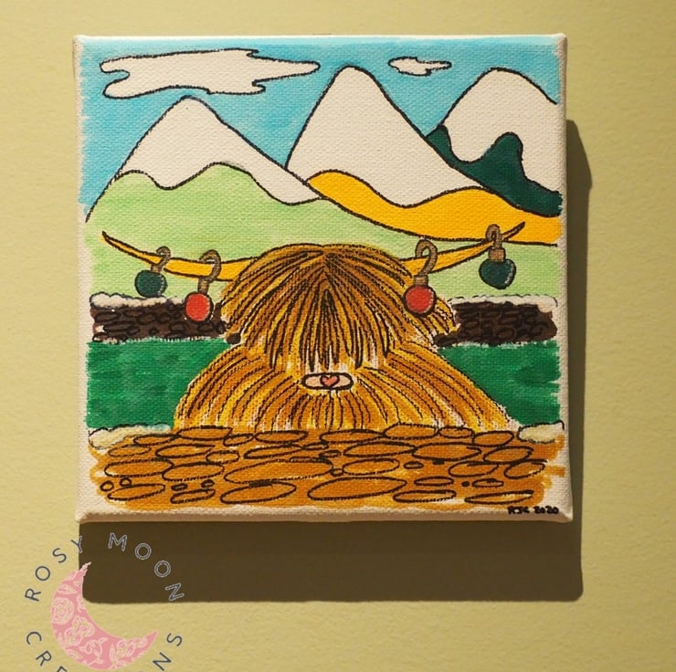 A very festive highland cow gets into the spirit of the season and pops on a few baubles.