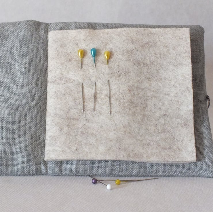 This book is made from grey linen which has been padded and has two wool felt pages.