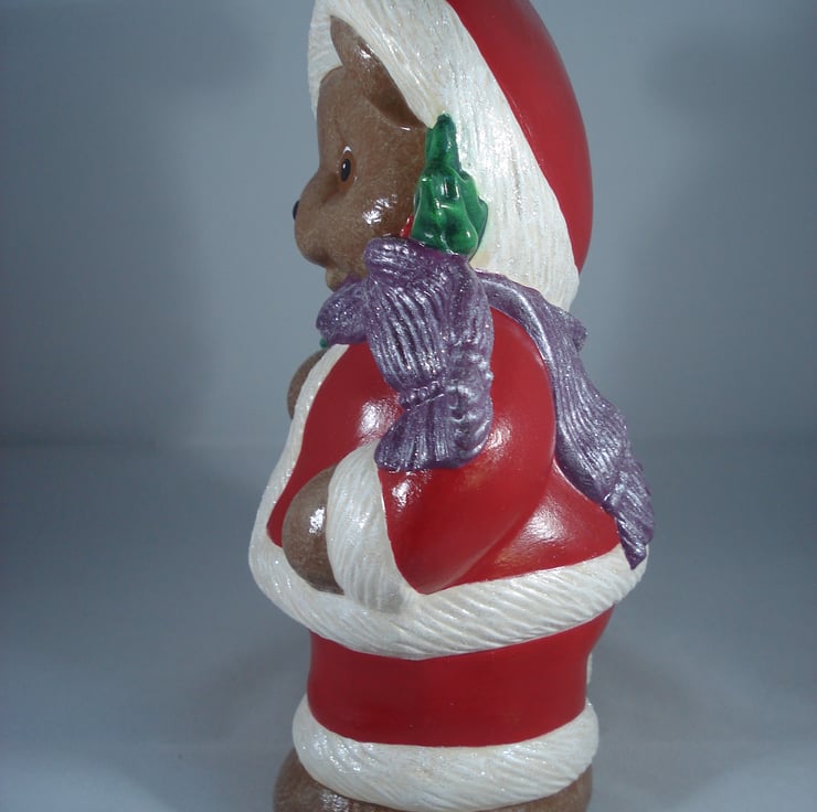 I have for sale a ceramic Christmas decoration, which was hand painted by myself. It is a standing bear figurine, dressed in a red Santa Claus suit, holding a green Christmas tree. This would make a lovely addition to anyone's Christmas decorations, or perhaps given as a gift.