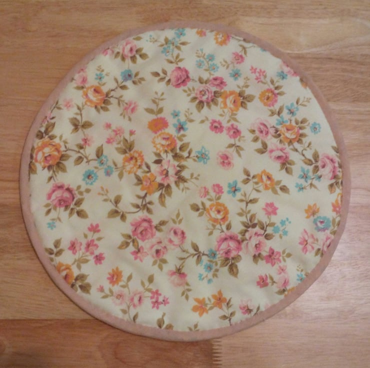 The mat is in a Beige theme and has a bias binding edging with a polyester wadding filling.