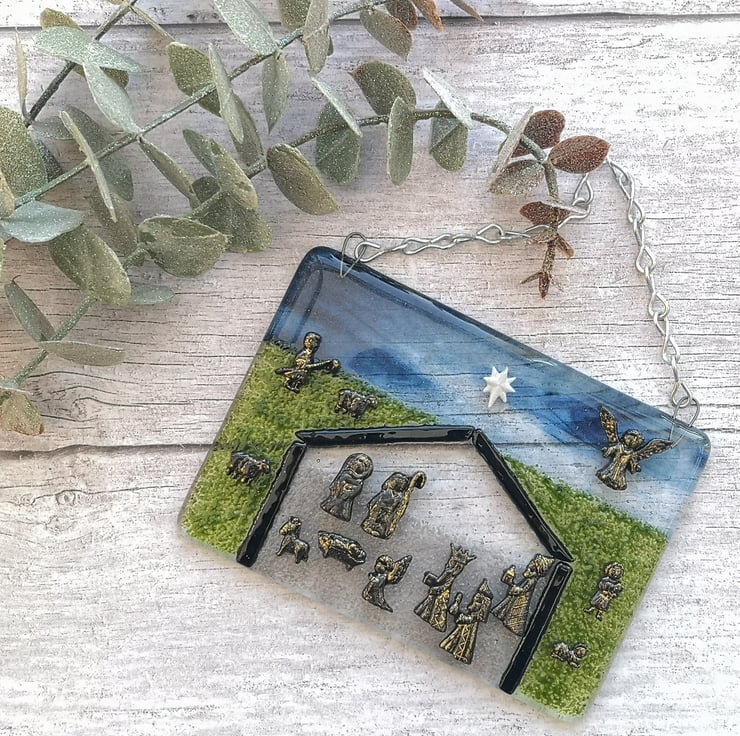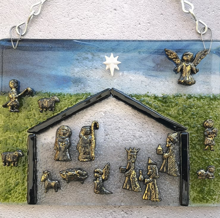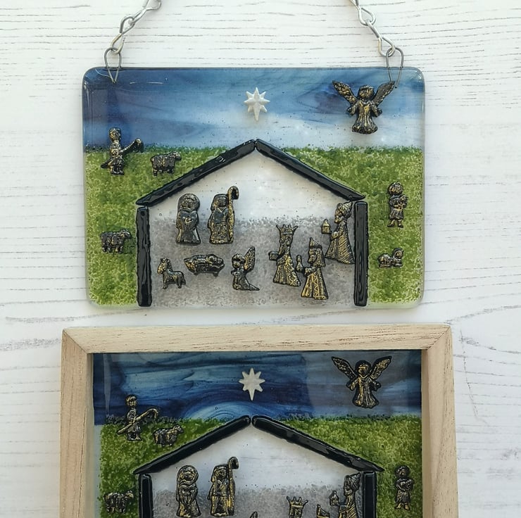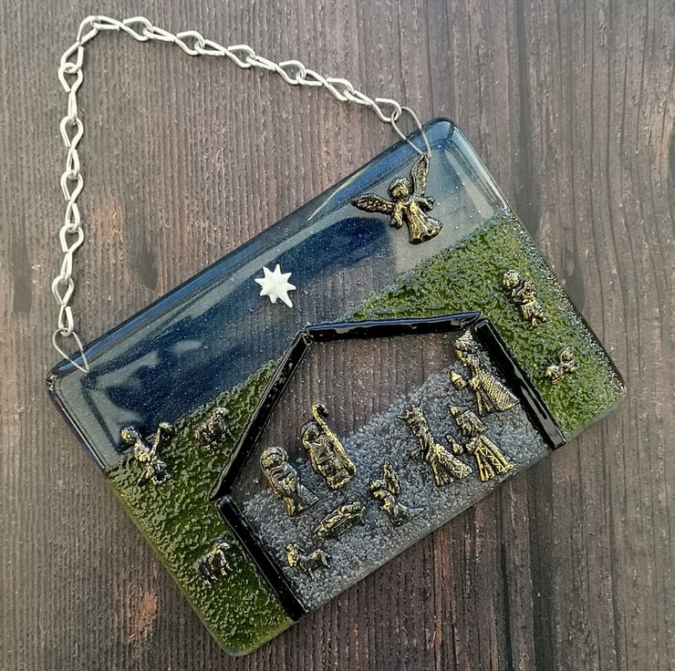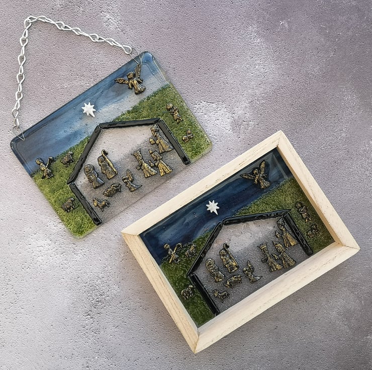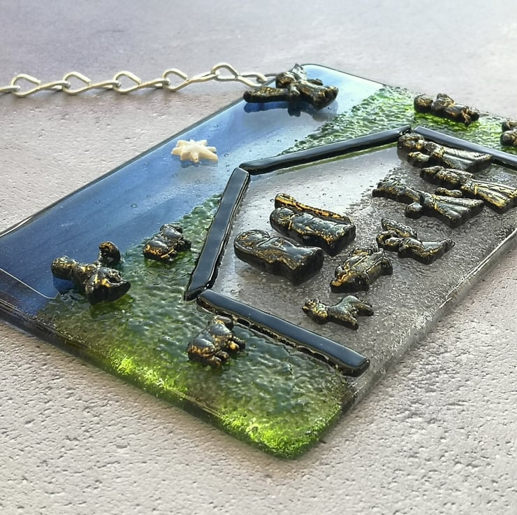 Made To Order - The pictures are an example of what the one you receive will look like, slight variations are to be expected. The pattern on the background 'night sky' glass will look slightly different on each one. If you would like me to send you a photo of the finished piece before posting please send me a message.