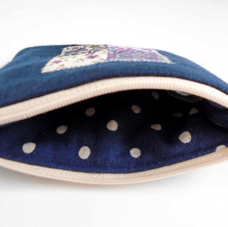 A lovely small coin purse , ideal for storing a selection of your loose change , can also be used as a mini make up bag .