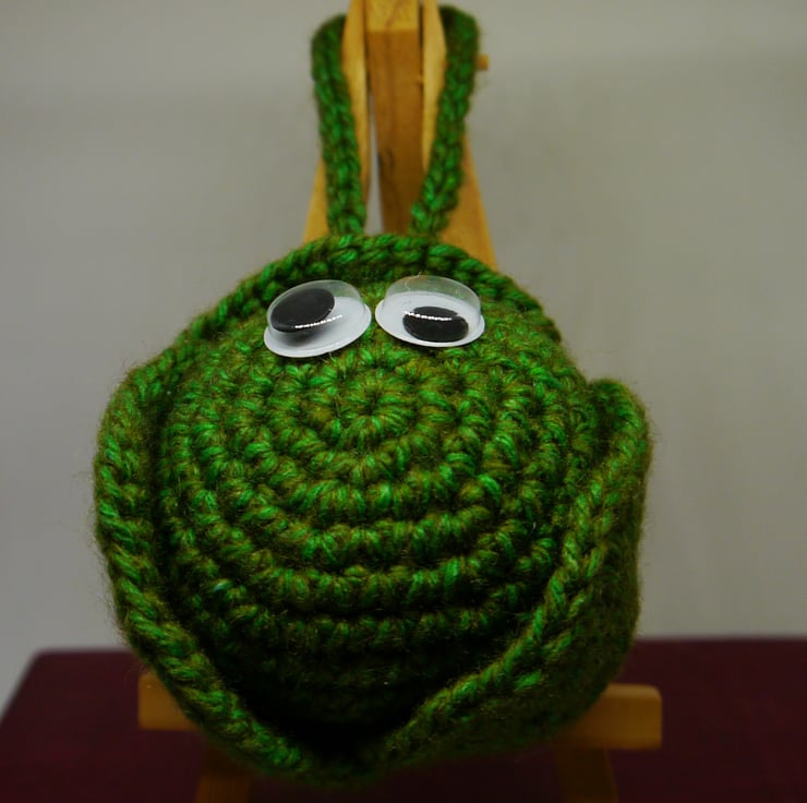 This larger than life character will be a great addition for any sprout lover or hater to their festive display. Made in bottle green yarn with large round googly eyes glued in place. Measuring approximately 7cm across 7cm deep and 14cm high including hanging loop. Designed as a decoration not a toy, created in a pet and smoke free home. Why not pair with my regular sprouts and create a sprout family.