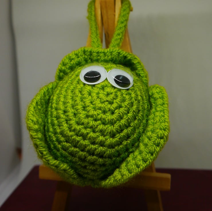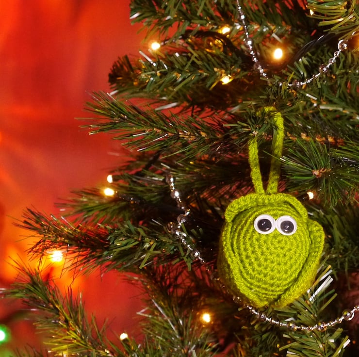 This larger than life character will be a great addition for any sprout lover or hater to their festive display. Made in leafy green yarn with large round plastic googly eyes glued on. Measuring approximately 7cm across 6cm deep and 12cm high including hanging loop. Designed as a decoration not a toy, created in a pet and smoke free home. Why not pair with my regular sprouts and create a sprout family.