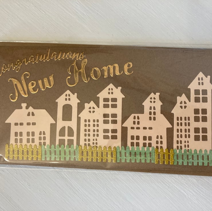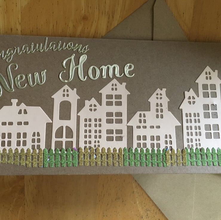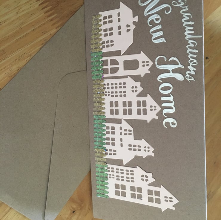 A lovely handcrafted Rustic style card perfect for congratulating friends or loved ones on their New Home.