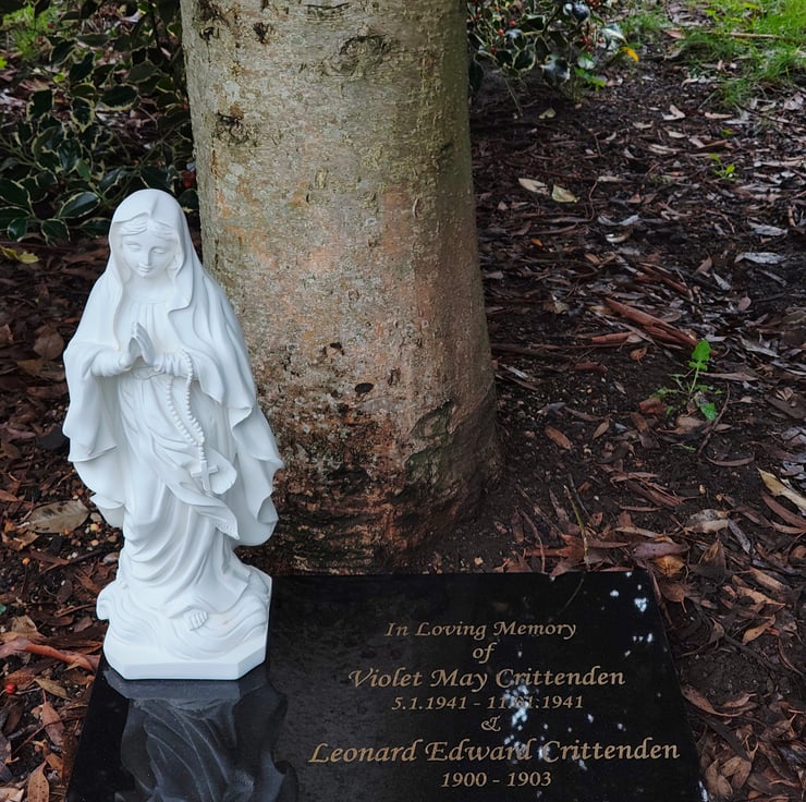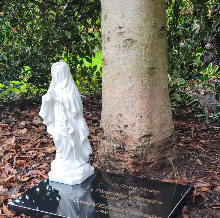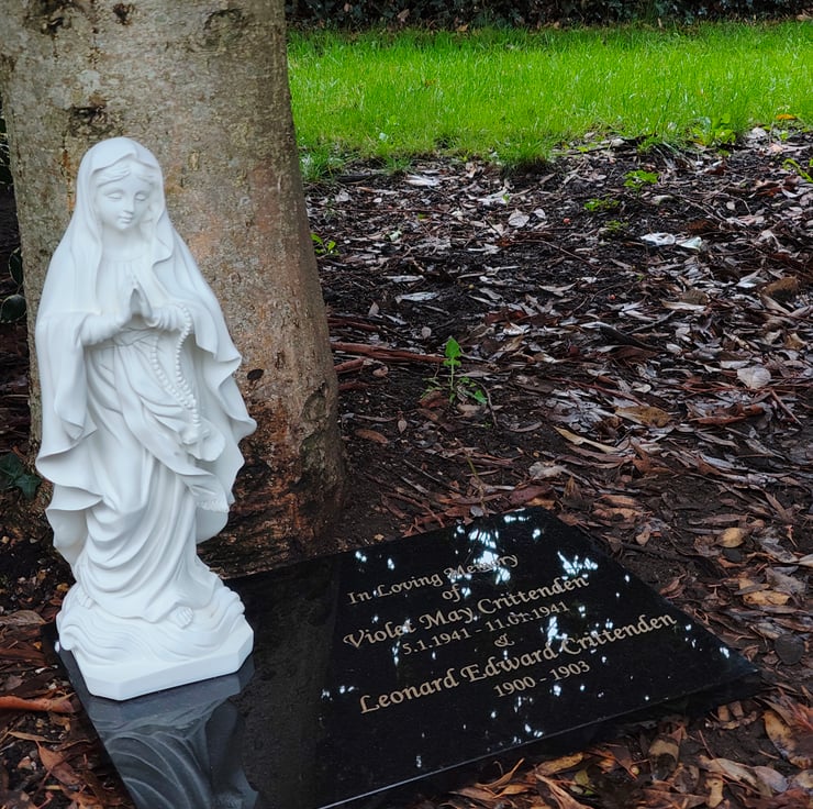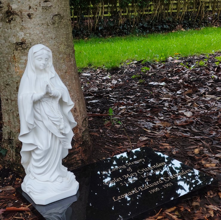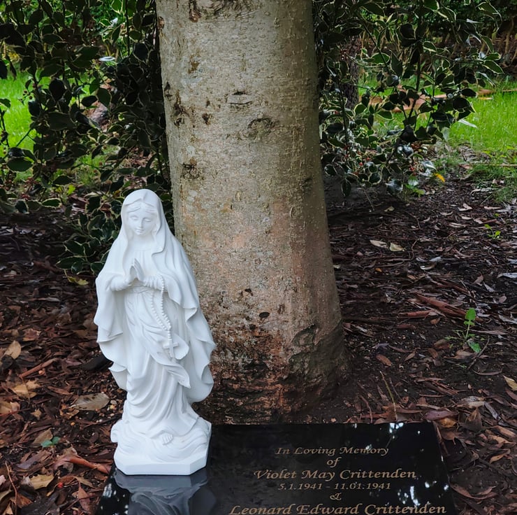 personalised black granite memorial plaque Our Lady headstone plaque Statue