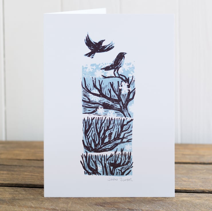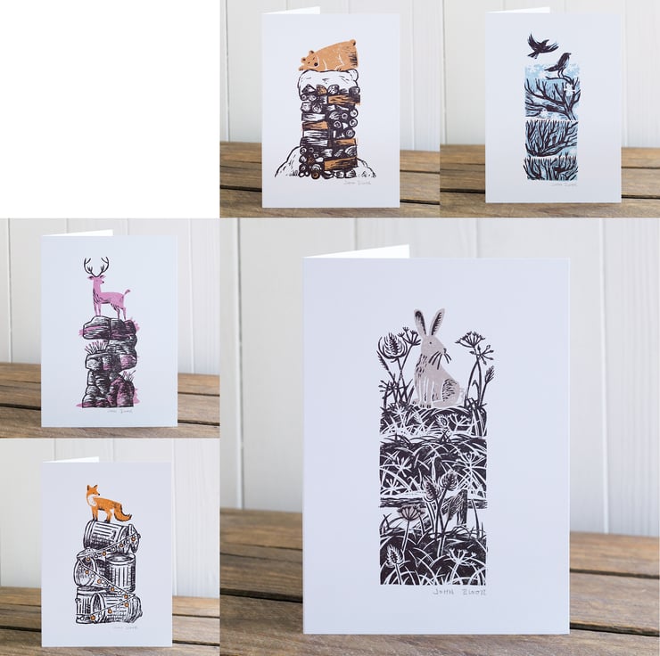 Winter Drifts cards, printed onto nice uncoated card with Kraft envelopes. A5 size. Set of all five designs: "Crows", "Fox", "Bear", "Stag" and "Hare". You will receive one of each design.