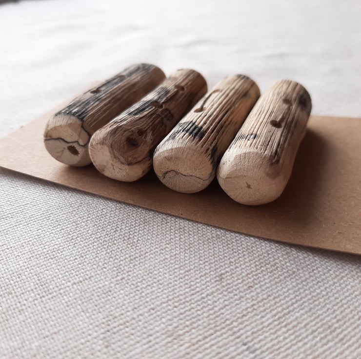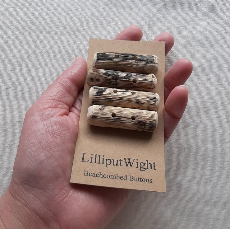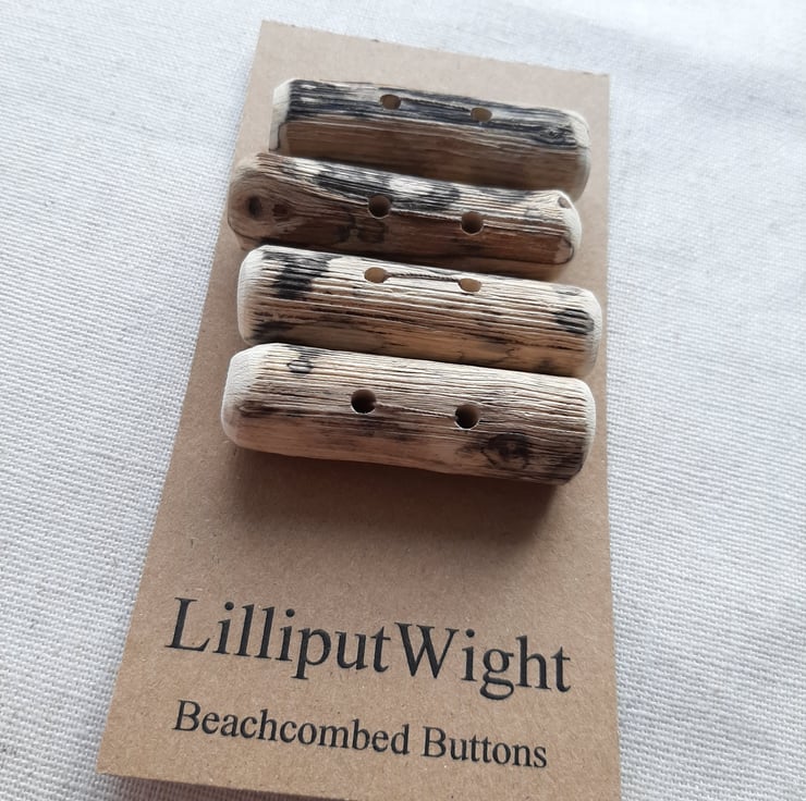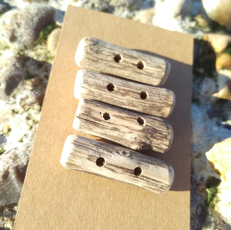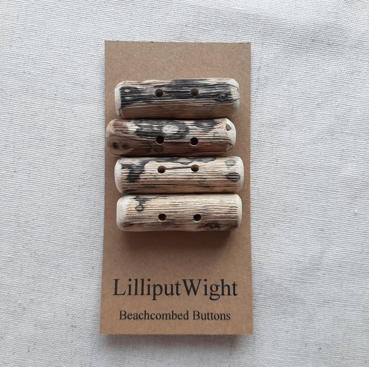 These four toggle buttons have been handmade by me from a piece of driftwood that I have collected from the beach in the West Wight.