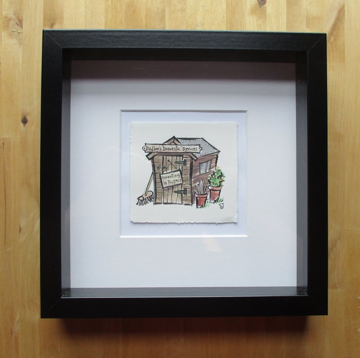 SALE - Tiny Art: The Shed – original art, framed watercolour painting