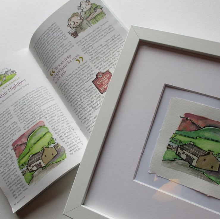 This tiny artwork was originally one of many “spot” illustrations that I created for the lovely people at Dalesman Publishing – the company behind Yorkshire’s best known magazine The Dalesman, The Countryman and others. I’ve been lucky enough to illustrate some tales by some really great authors, including Nicholas Rhea of Heartbeat fame.
