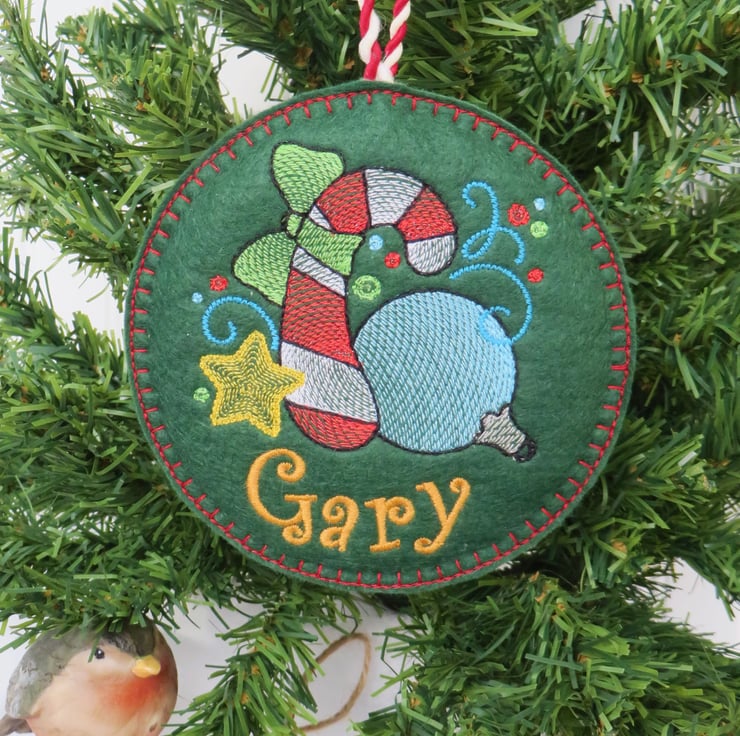 Personalised Felt Christmas Ornament, Machine Embroidered Customised Tree Decoration