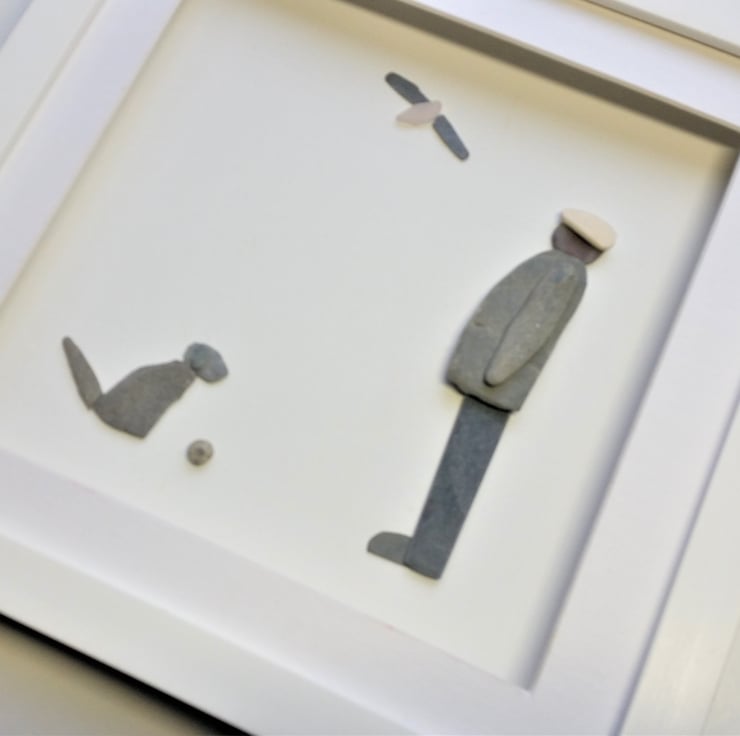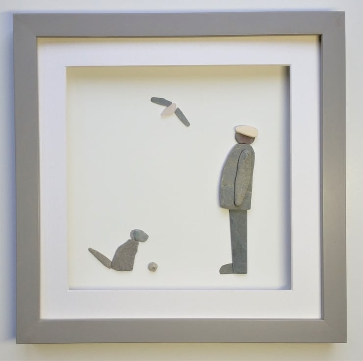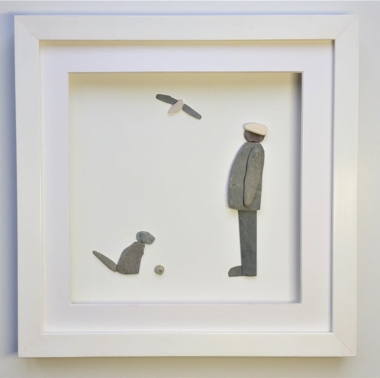 A pebble art man and his dog - the perfect gift for a dog lover.