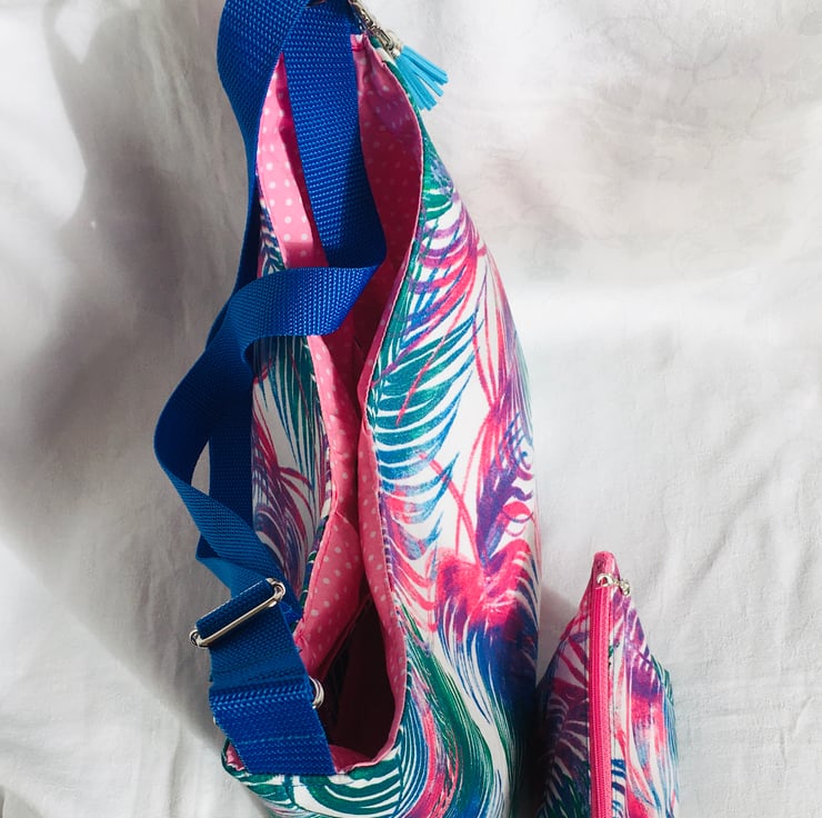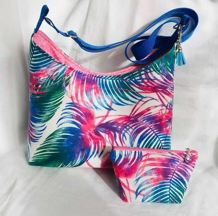 This set would make a fantastic gift for anyone who fresh look and palm leaves theme, a present for a teenager or an additional bag just for you. The bag has been made from canvas weight fabric, which has been interfaced to help with structure and stability. The lining is cotton fabric and handle a strong webbing.