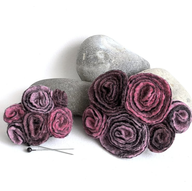 NB I often make a few of these brooches in the same colour felts, so the size and position of the flowers on your brooch may differ slightly from the ones above.