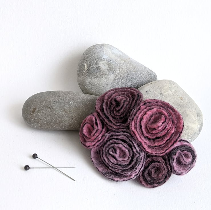 I have used three shades of dusky pink to make a cluster of felted roses.