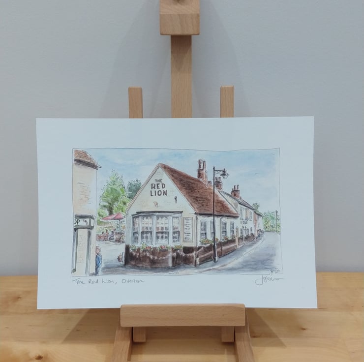 Paper size A4, image size approx 19.5cm x 12cm. The original painting is created with pen and ink with watercolour.