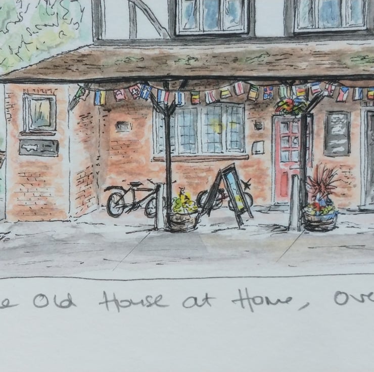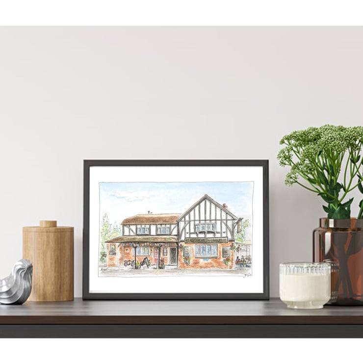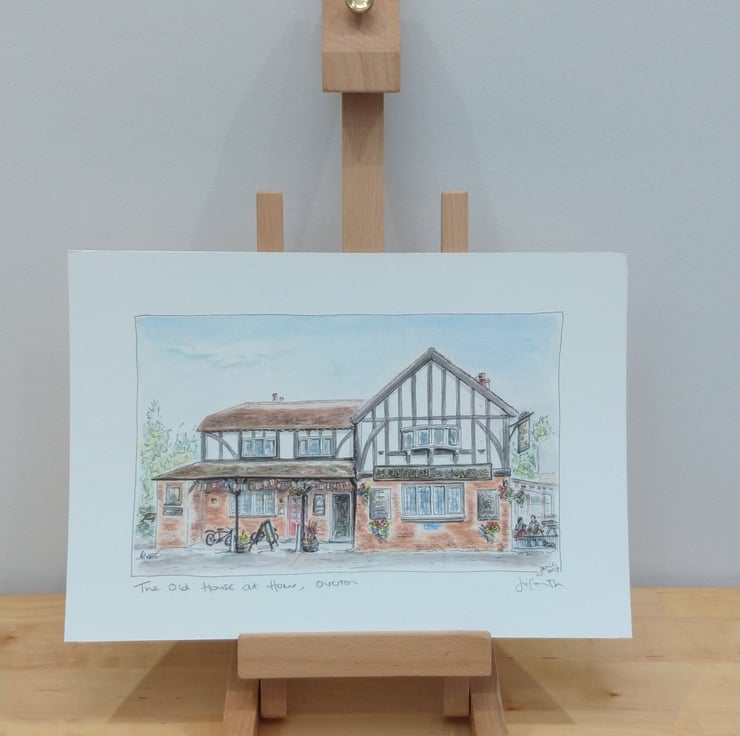 Paper size A4, image size approx 19.5cm x 12cm. The original painting is created with pen and ink with watercolour.