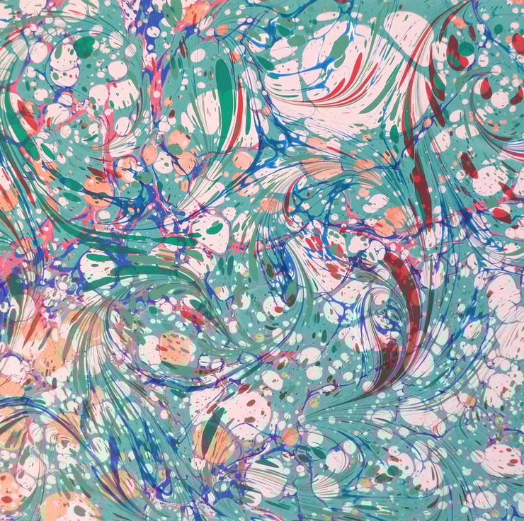 The result is a a multi layered effect where the first marbling shows through the top marbling and gives beautifully detailed pieces.