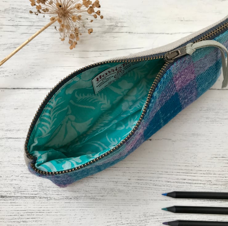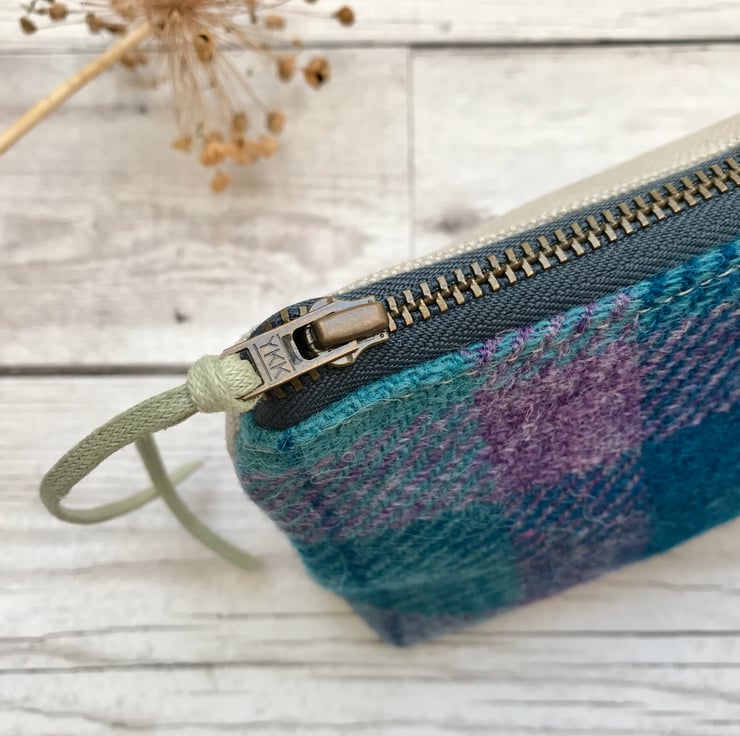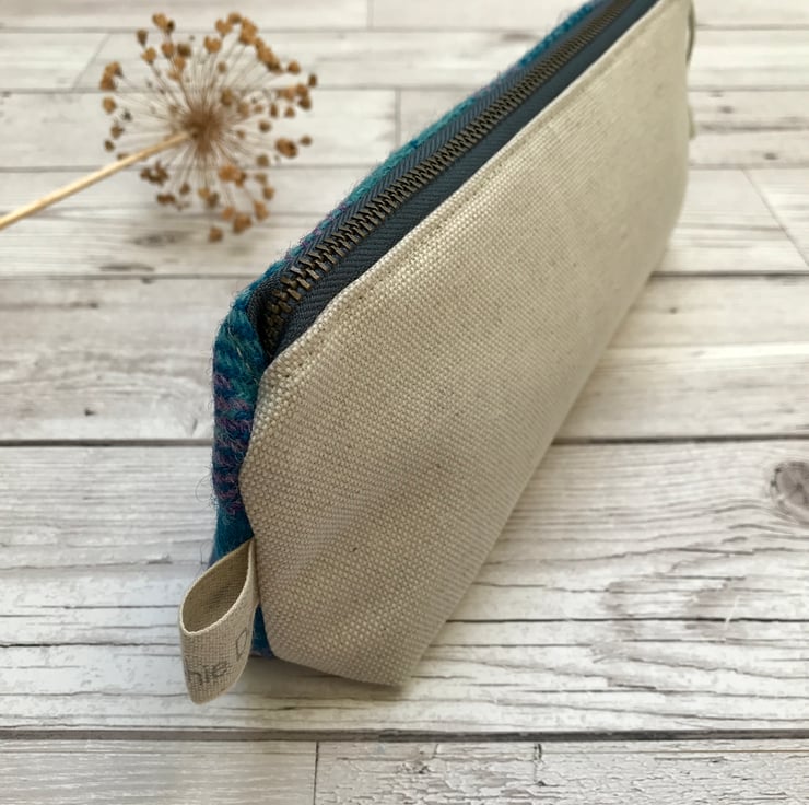 This unique zipper pouch is made from Harris Tweed, with Scottish Linen Union on the reverse. It would make an ideal gift or a treat for yourself, and is perfect for pencil and pens, make up brushes or cosmetics