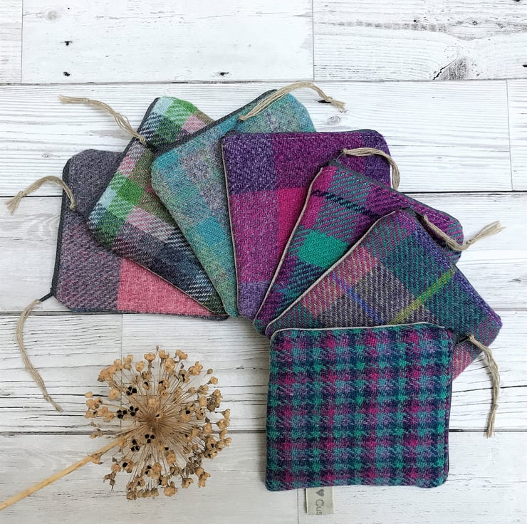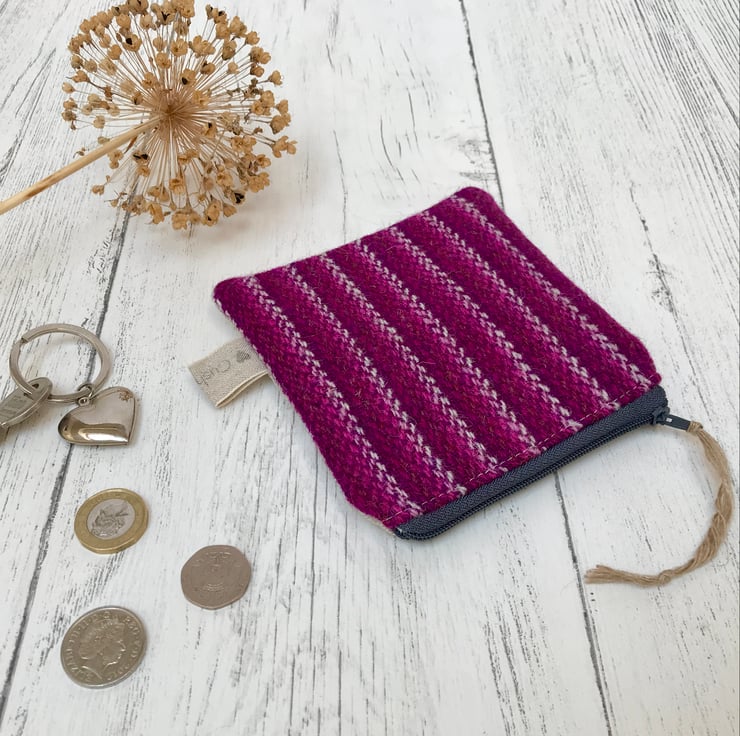 This unique purse is made from Harris Tweed, with Scottish Linen Union on the reverse. It would make an ideal gift or a treat for yourself, and is a perfect size to hold a bank card, some cash and a set of keys or even ear buds or jewellery