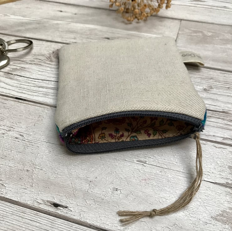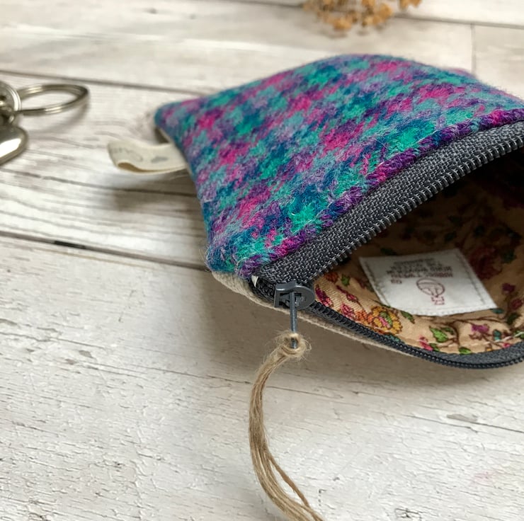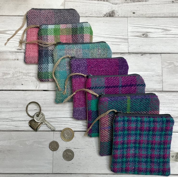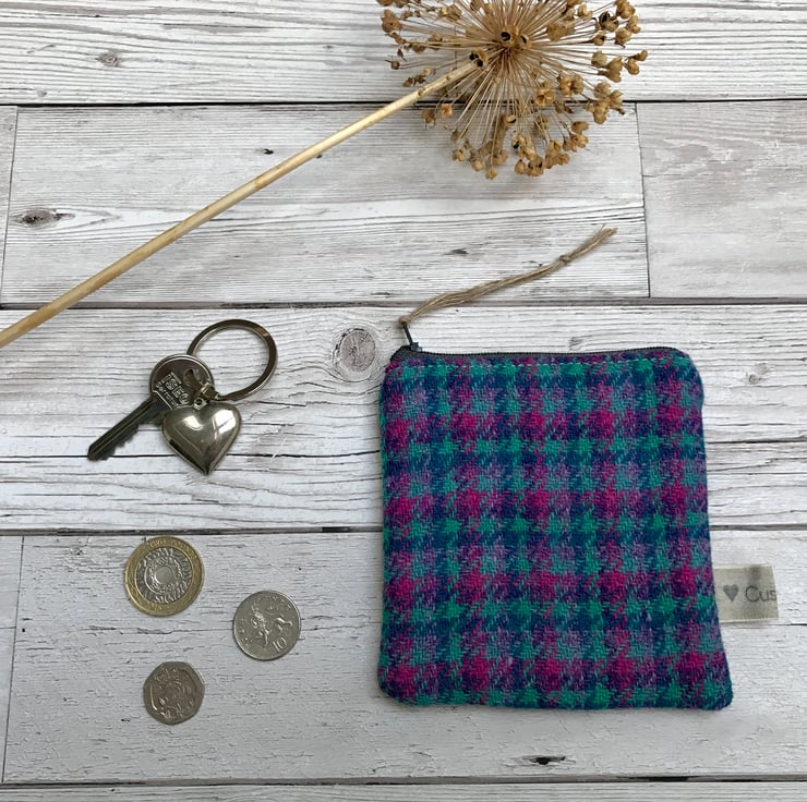 This unique purse is made from Harris Tweed, with Scottish Linen Union on the reverse. It would make an ideal gift or a treat for yourself, and is a perfect size to hold a bank card, some cash and a set of keys or even ear buds or jewellery