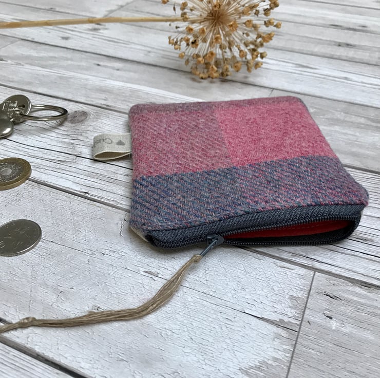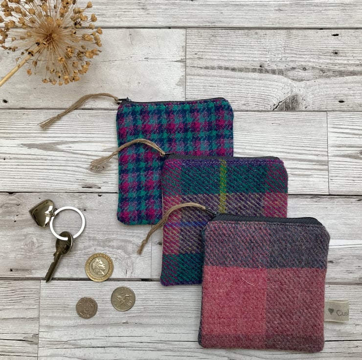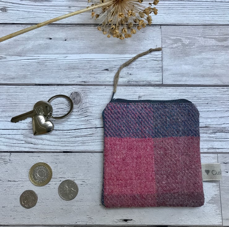 This unique purse is made from 100% woollen Tweed woven on the Isle of Harris by Amor Weavers, with Scottish Linen Union on the reverse. It would make an ideal gift or a treat for yourself, and is a perfect size to hold a bank card, some cash and a set of keys or even ear buds or jewellery