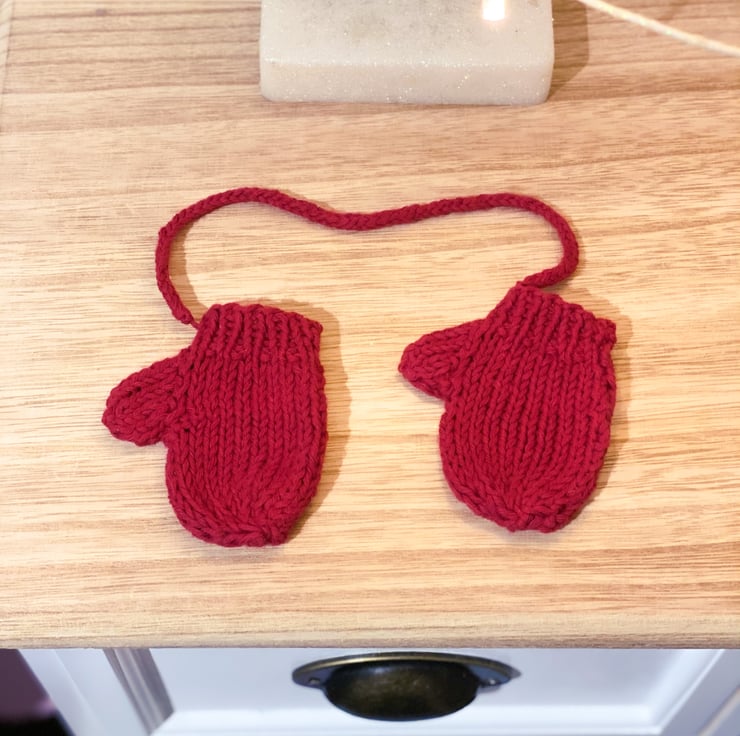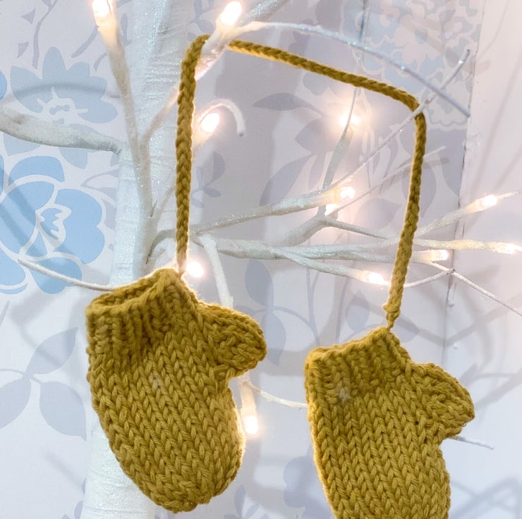 These adorable little hand knitted mitten decorations will complete any Christmas decor.