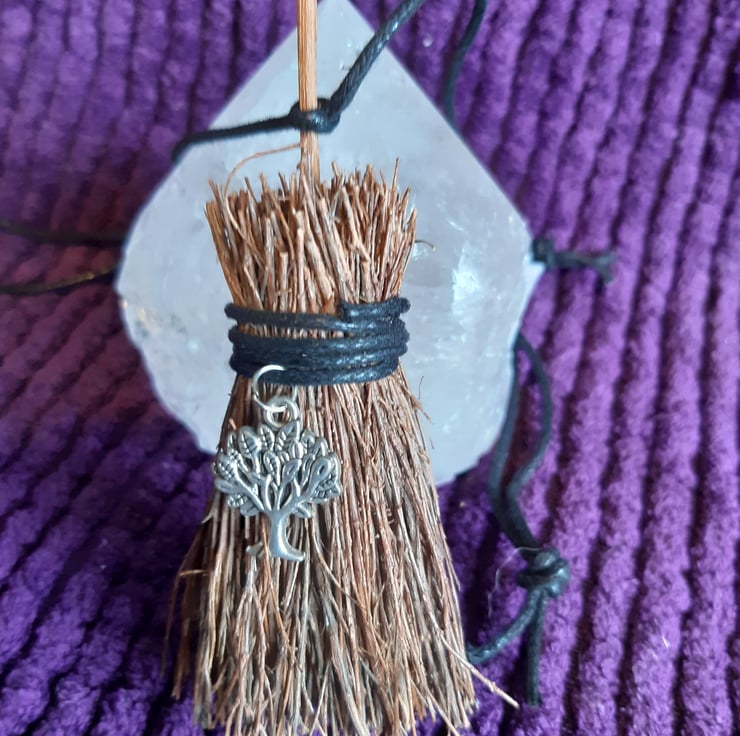 One day I was sat fiddling with some small twigs I had collected and made a small besom, which I left in my car and I added a few drops of essential oil.